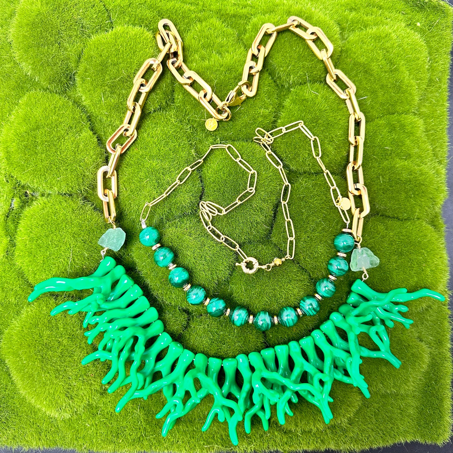 The price reflects only the malachite necklace. Statement necklace sold separately.
