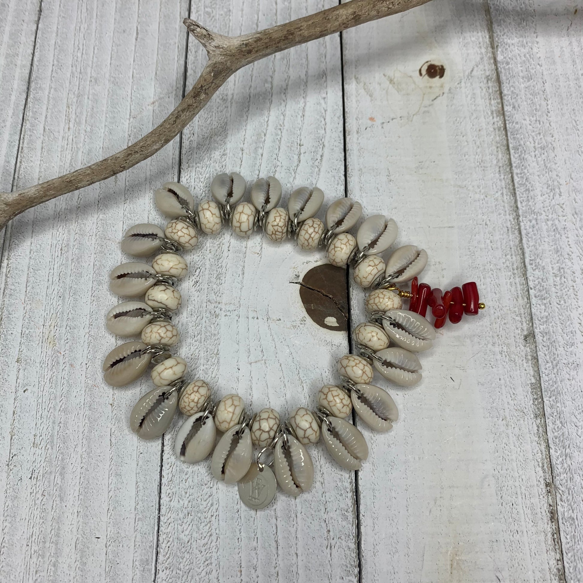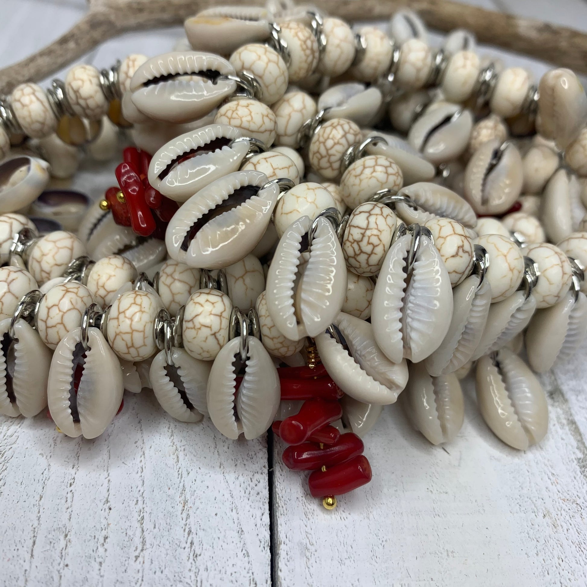 Natural Cowry Shells with Coral Accents 440-04 | Erika Williner Designs