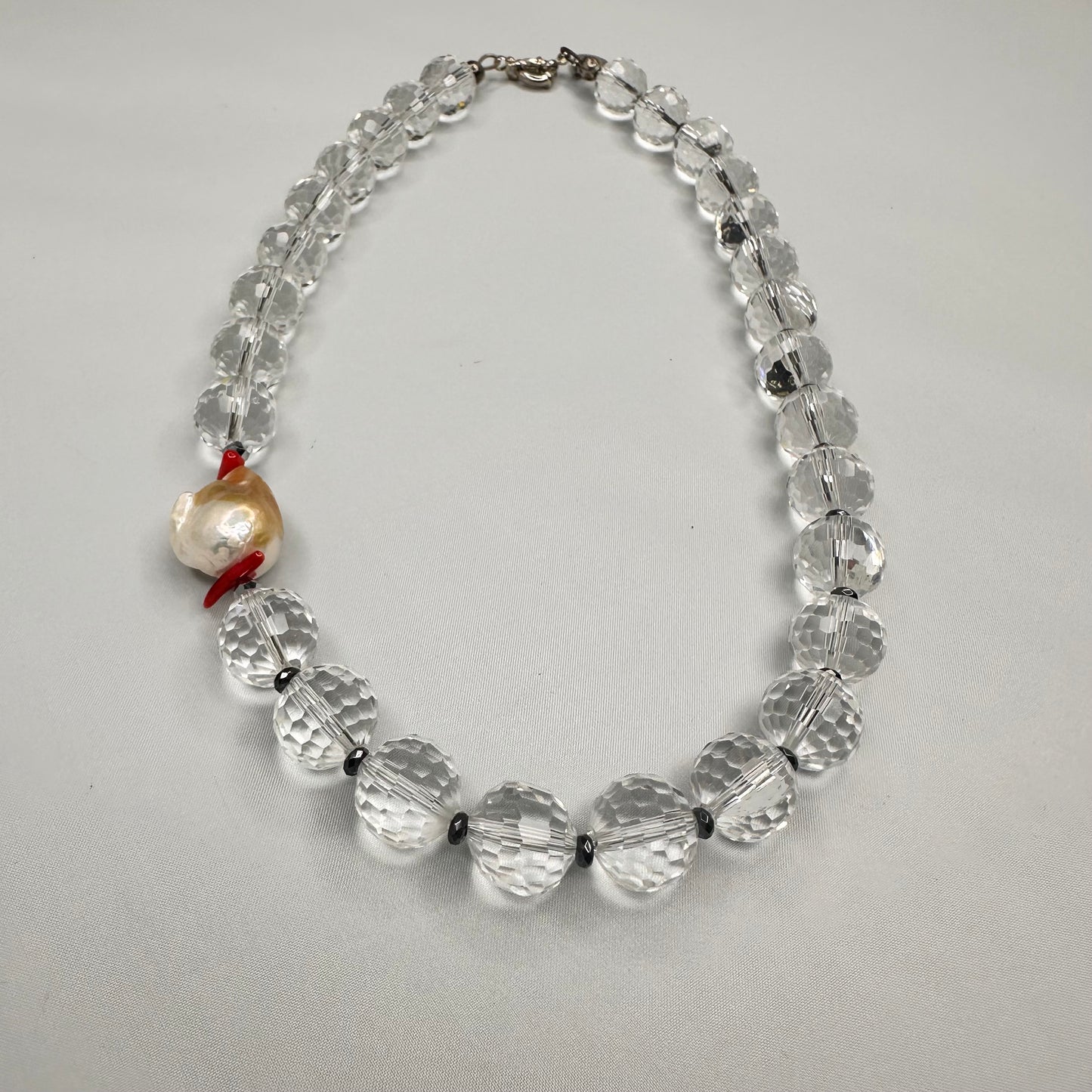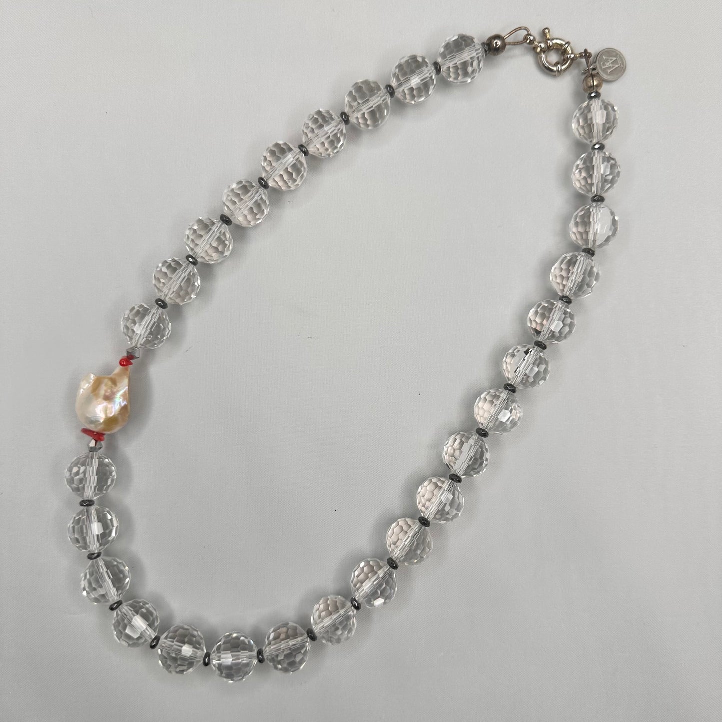 Multi Faceted Crystal Beads, Hematite, Coral and Baroque Pearl Necklace | Erika Williner Designs