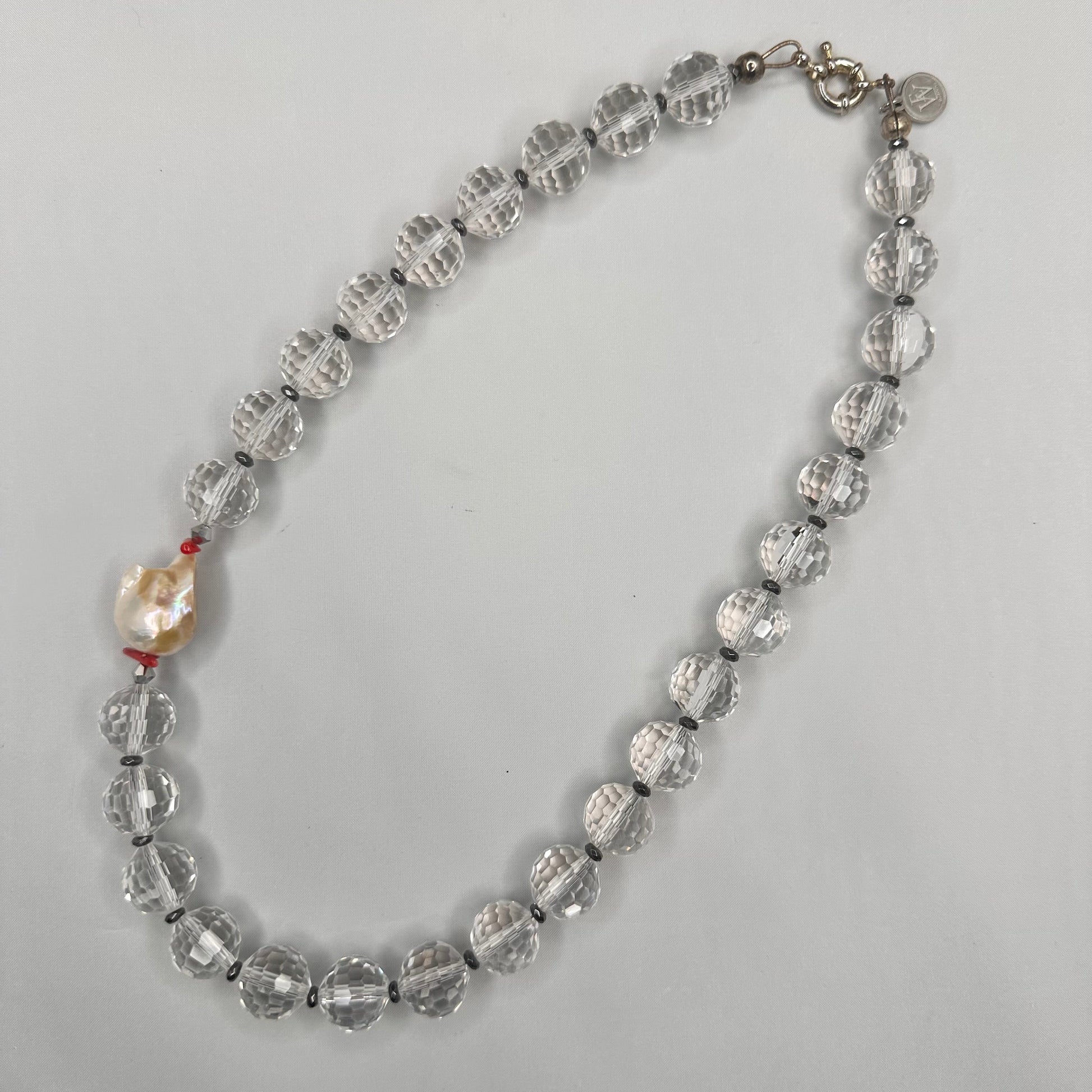 Indulge in the opulence of the ocean with our exquisite Multi Faceted Crystal Beads, Hematite, Coral and Baroque Pearl Necklace. Enhance your wardrobe with these luxurious, handcrafted gems inspired by the depths of the sea. Elevate your style and celebrate your unique elegance with Erika Williner Designs.