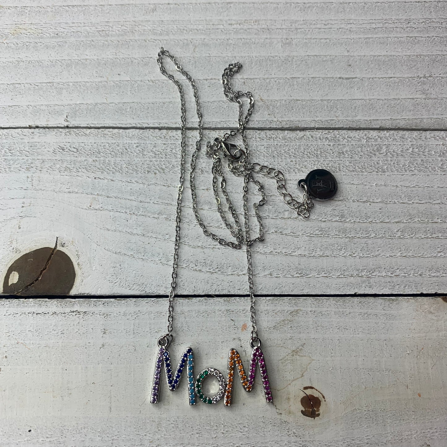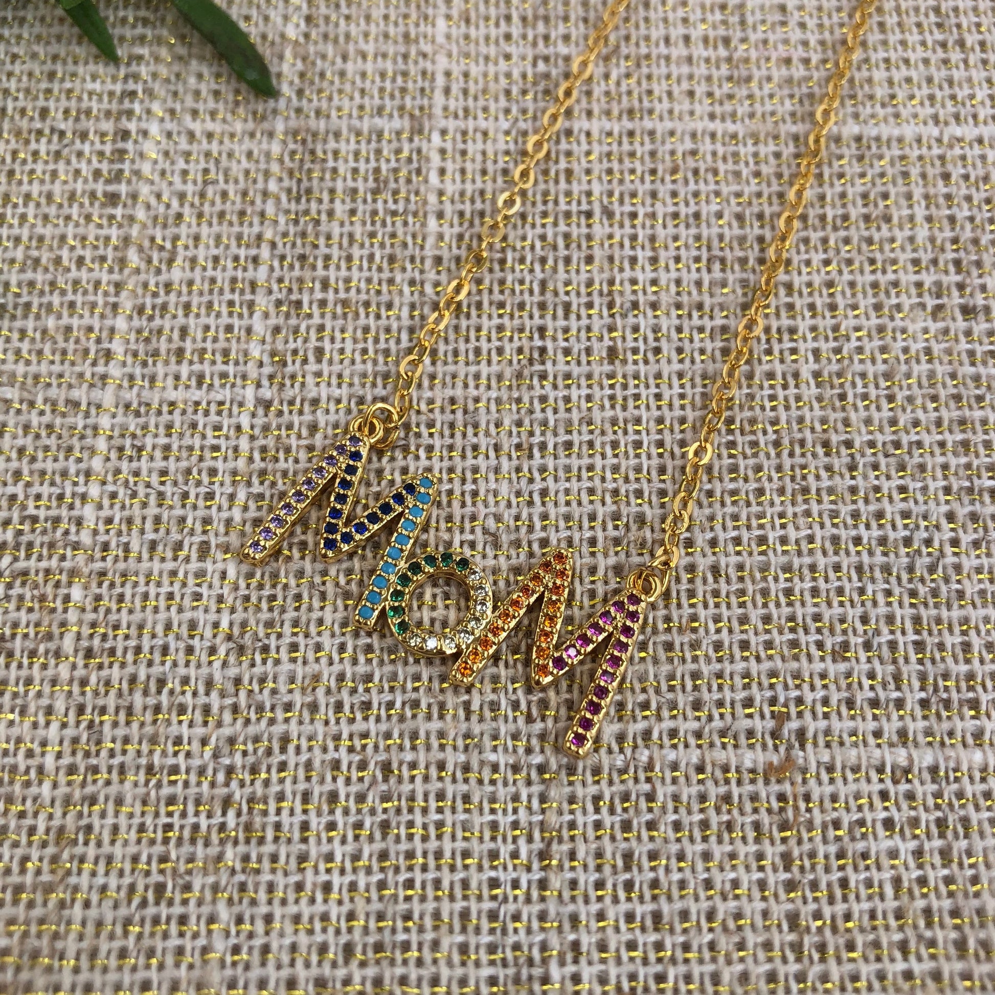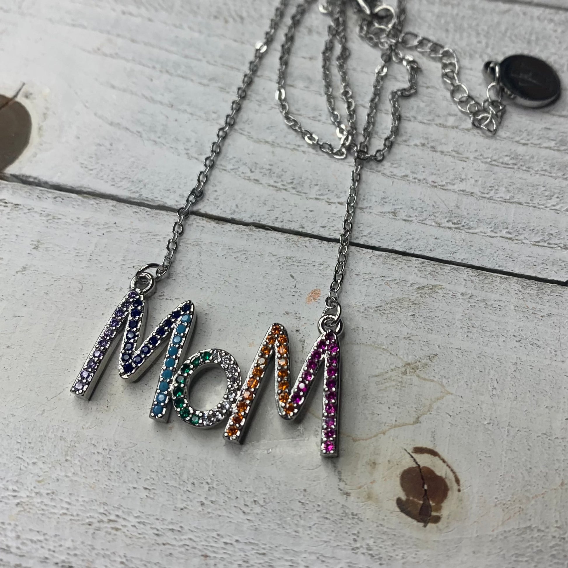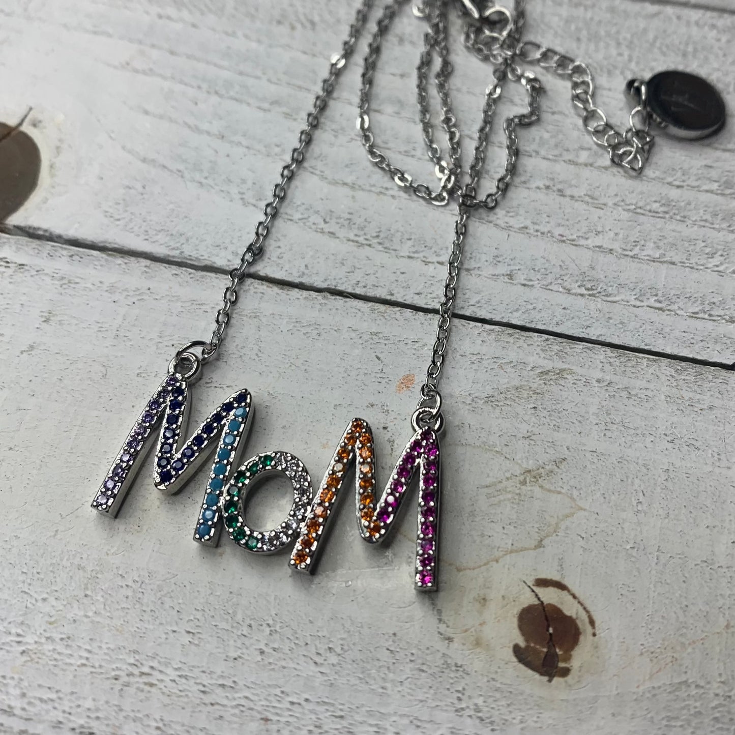 Chain with a multicolor cz pave embellished Mom necklace 311-9 | Erika Williner Designs