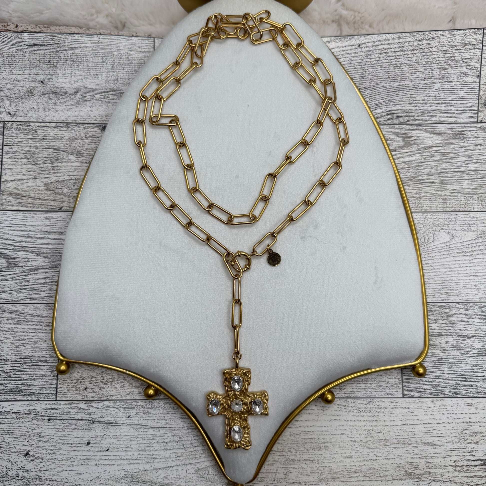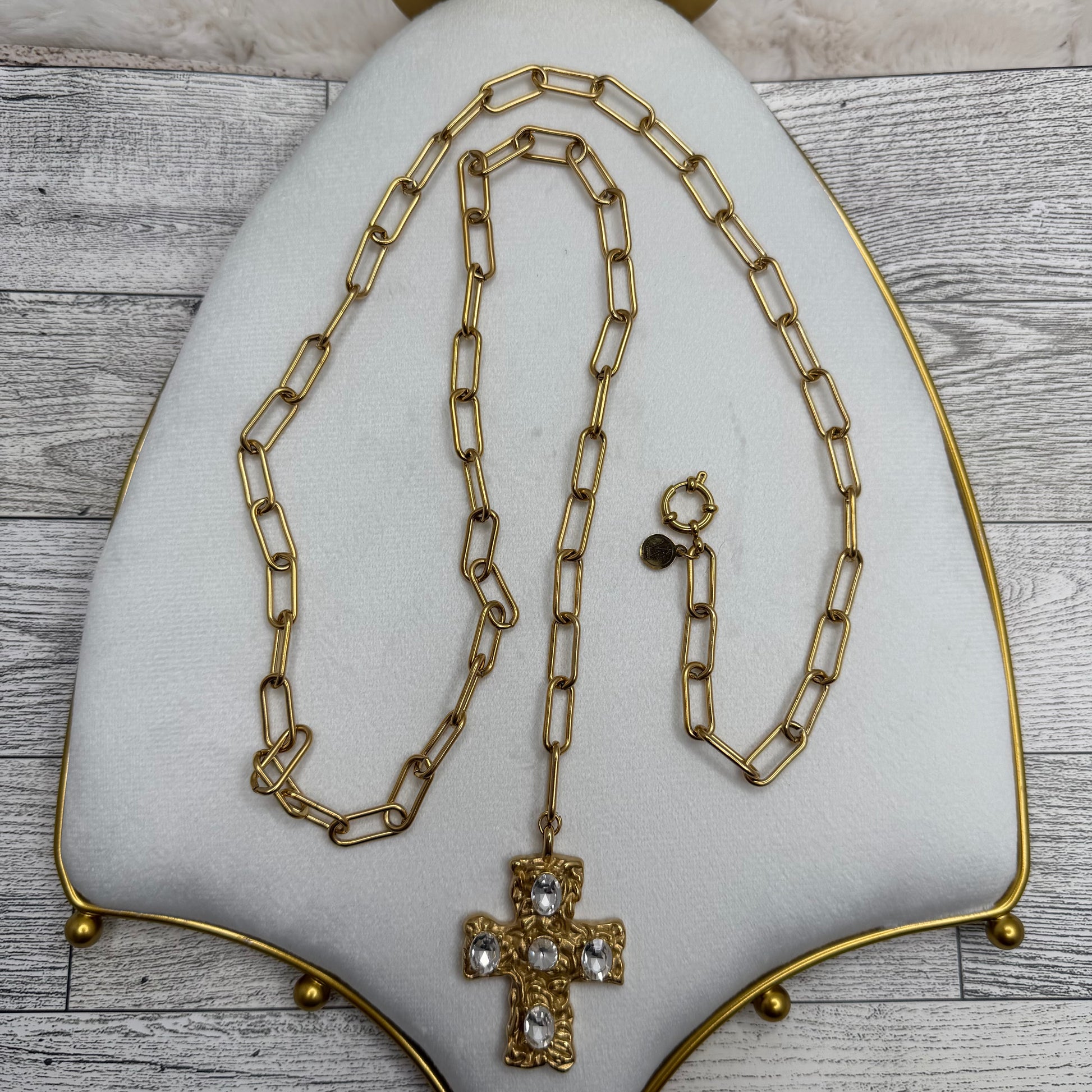 Paper Clip Chain with Golden Cross with Zircons | Erika Williner Designs