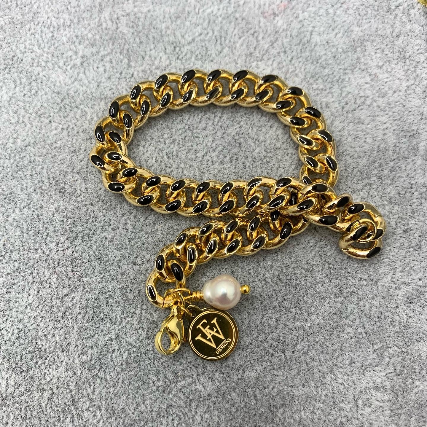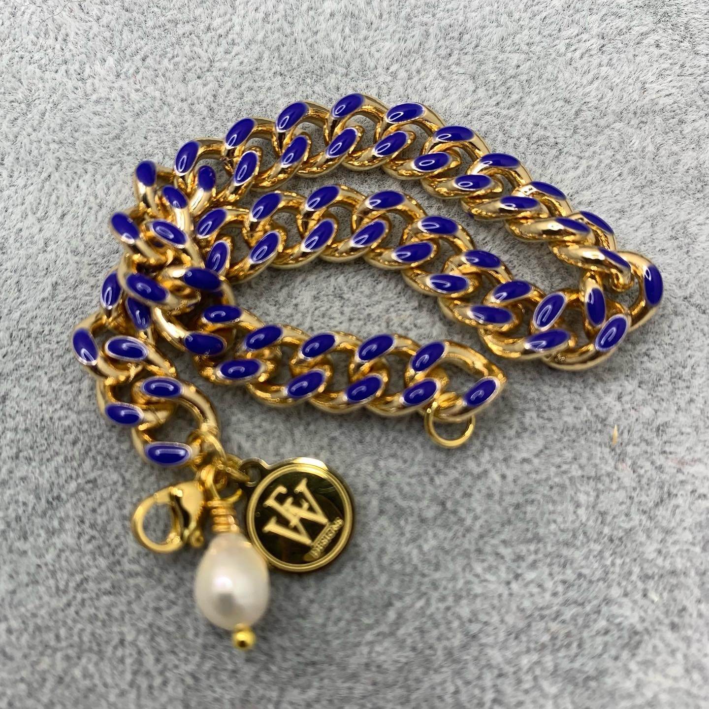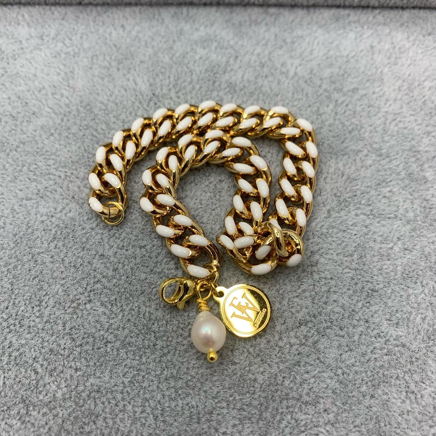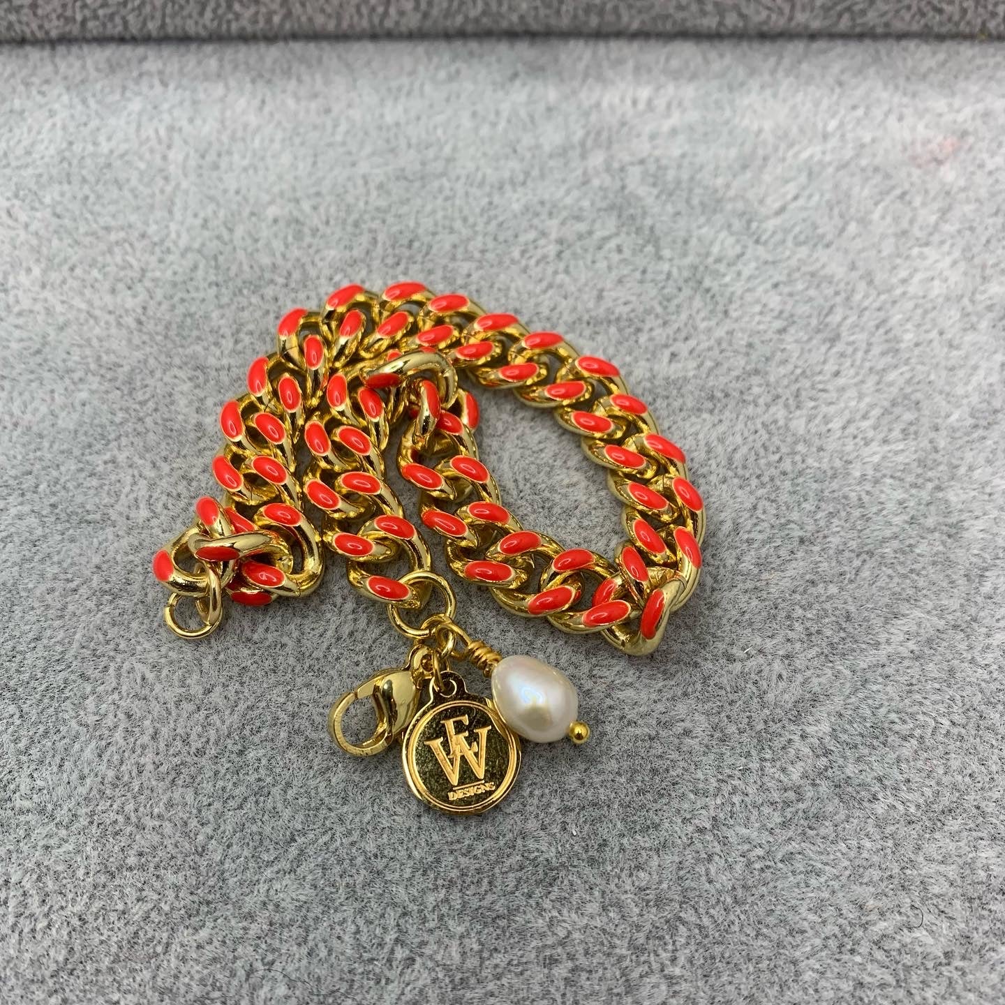 Upgrade your jewelry game with this 14k gold-plated chain that rocks neon enamel embellishments. And as if that wasn't enough, it also comes with a chic fresh water pearl charm and our signature logo charm. Talk about bang for your buck!