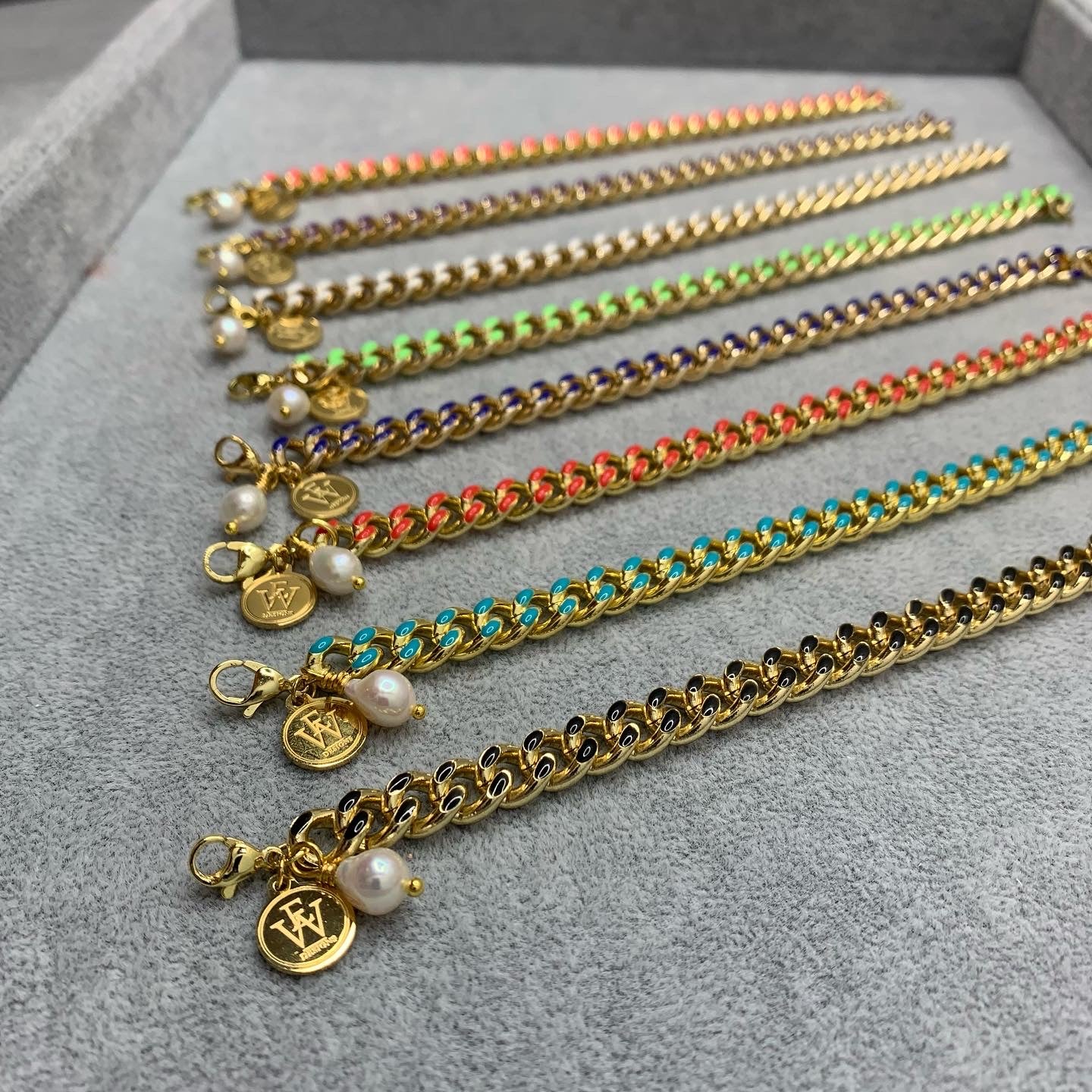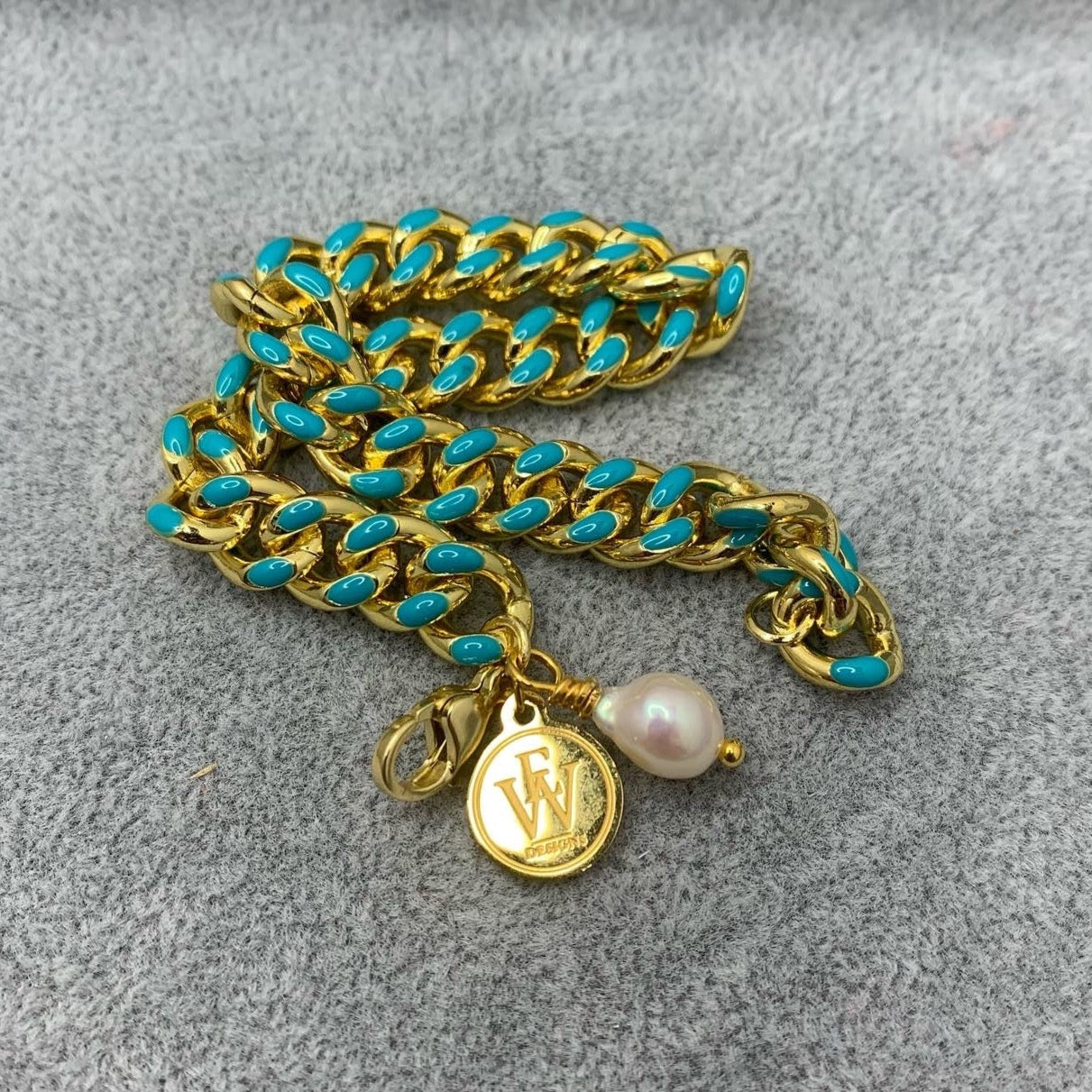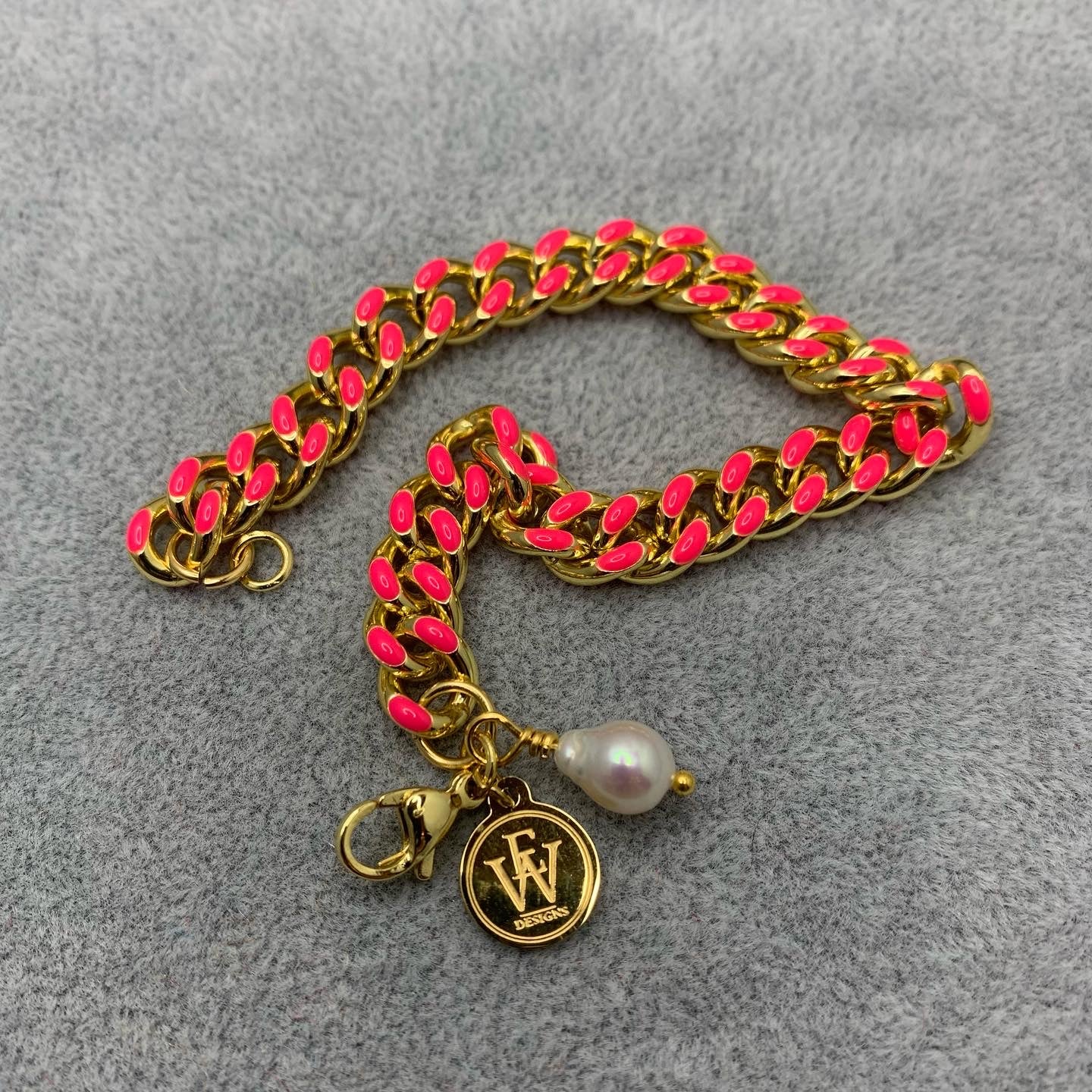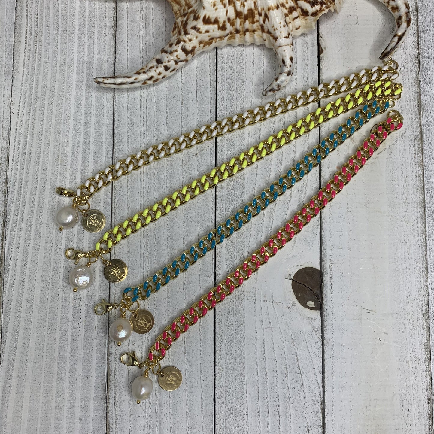 14k Gold Plated Brass Chain Embellished with Neon Enamel Bracelet 400-03 | Erika Williner Designs