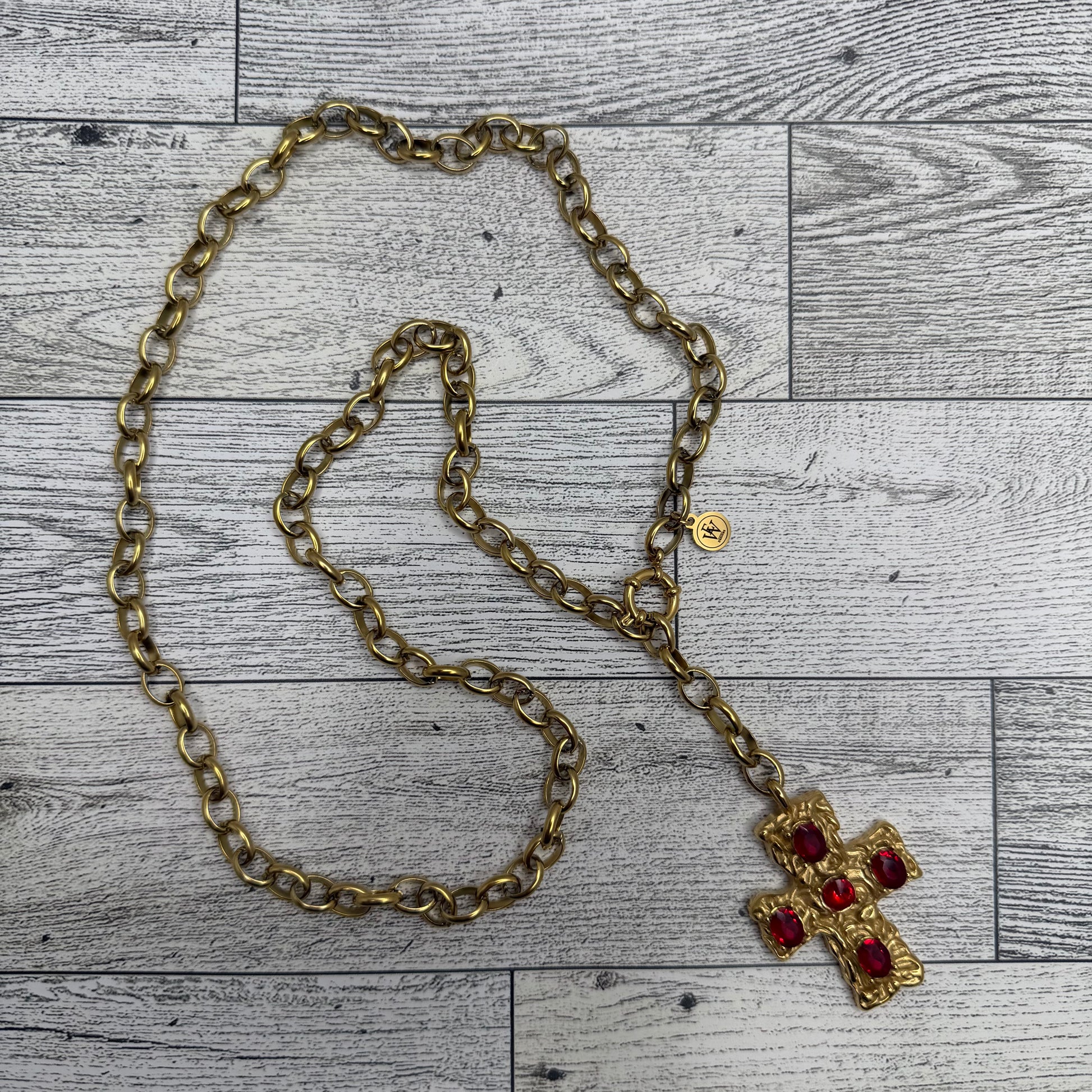 Elevate your everyday style with this stunning rollo chain featuring a gleaming gold cross adorned with vibrant red zircons. The classic rollo link design offers timeless appeal, while the sparkling crimson stones add a bold pop of color and sophistication. Perfect for layering or wearing solo, this piece brings together elegance and contemporary flair. Whether you're dressing up for a special occasion or adding a touch of glamour to casual wear, this chain makes a meaningful statement. A versatile accessory that celebrates your unique sense of style.