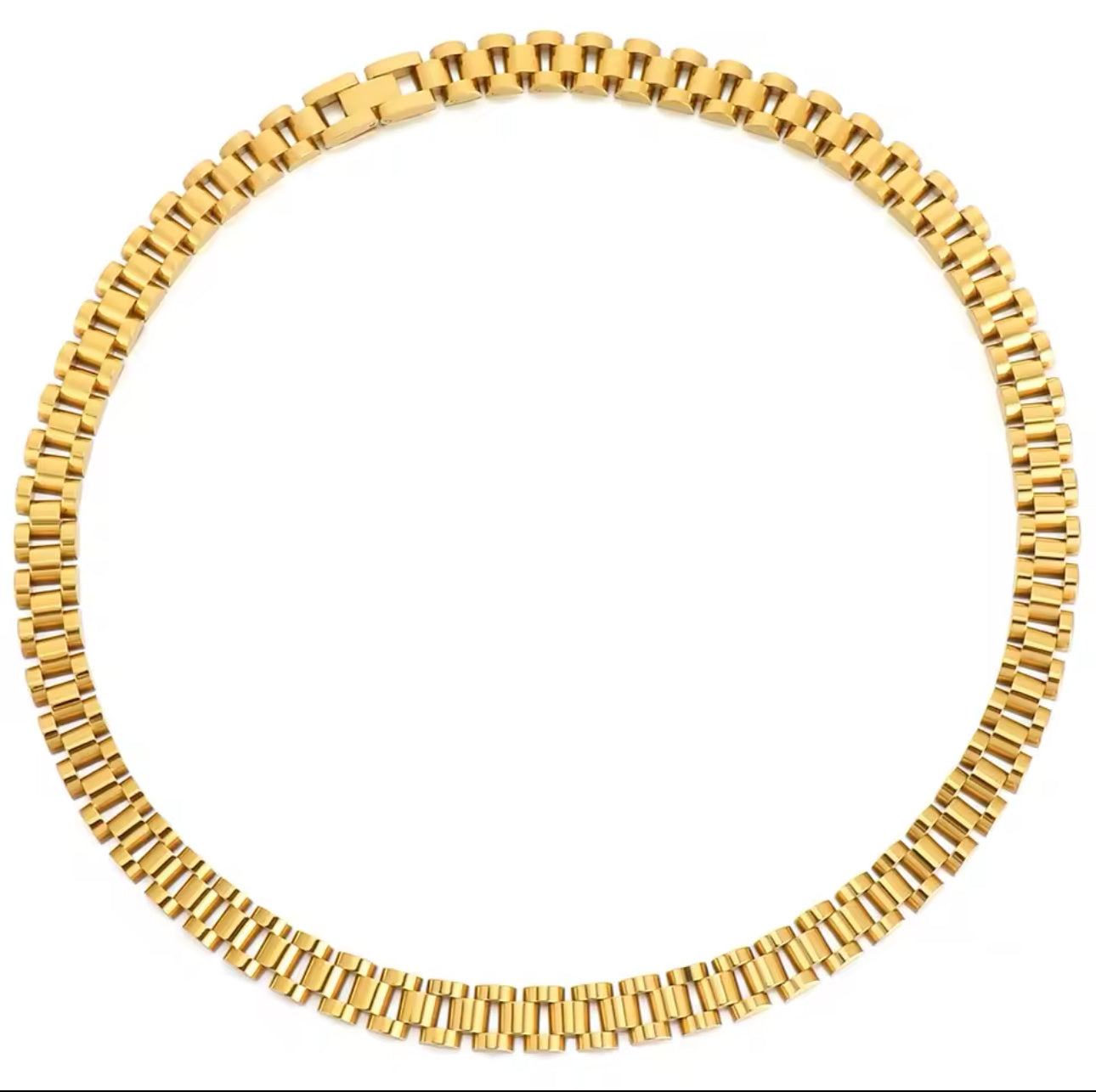 This artfully designed necklace is made using stainless steel and 18k gold plating. I will elevate any look, making you feel like a sophisticated and exclusive connoisseur of fashion.