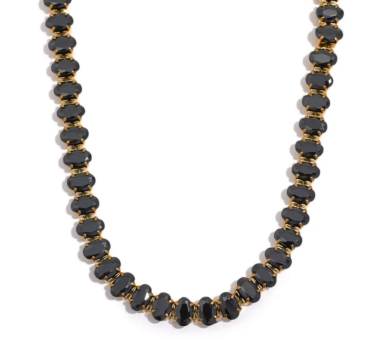 Ball and Chain Stainless Steel Necklace with Zircon Embellish 300-31 | Erika Williner Designs